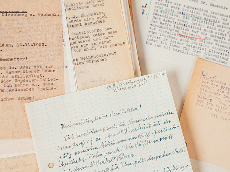 Rudolf Hauschka war nicht nur ein leidenschaftlicher Forscher, sondern auch ein fleißiger Schreiber. Drei Regalmeter Schriftgut befinden sich in seinem Nachlass. Darunter auch viele Briefwechsel mit Ärztinnen und Ärzten – und mit der Kosmetologin Elisabeth Sigmund, mit der er 1967 die Dr. Hauschka Kosmetik entwickelte.