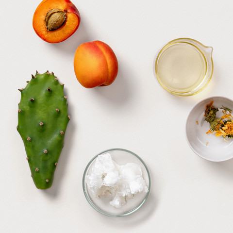 Utilisée en exclusivité pour nos soins solaires, la figue de Barbarie est une vraie guerrière : pleine de vie, gorgée d’eau et résistante. Sa chair vert vif a des propriétés antioxydantes et retient l’humidité. Quant à l’abricot, il nous montre comment il se sert de la lumière pour faire mûrir son fruit qui devient jaune orangé comme le soleil, doux et duveteux à l’extérieur, séduisant et juteux à l’intérieur : un véritable modèle pour notre peau.